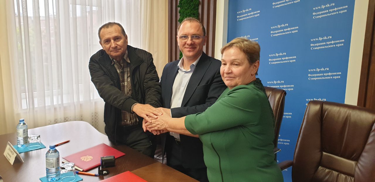 В здании Федерации профсоюзов Ставропольского края состоялось подписание нового краевого отраслевого трехстороннего соглашения между министерством строительства и архитектуры Ставропольского края, краевой организацией профсоюза работников строительства и промышленности строительных материалов РФ, Ассоциацией «Союз строителей (работодателей) Ставропольского края».