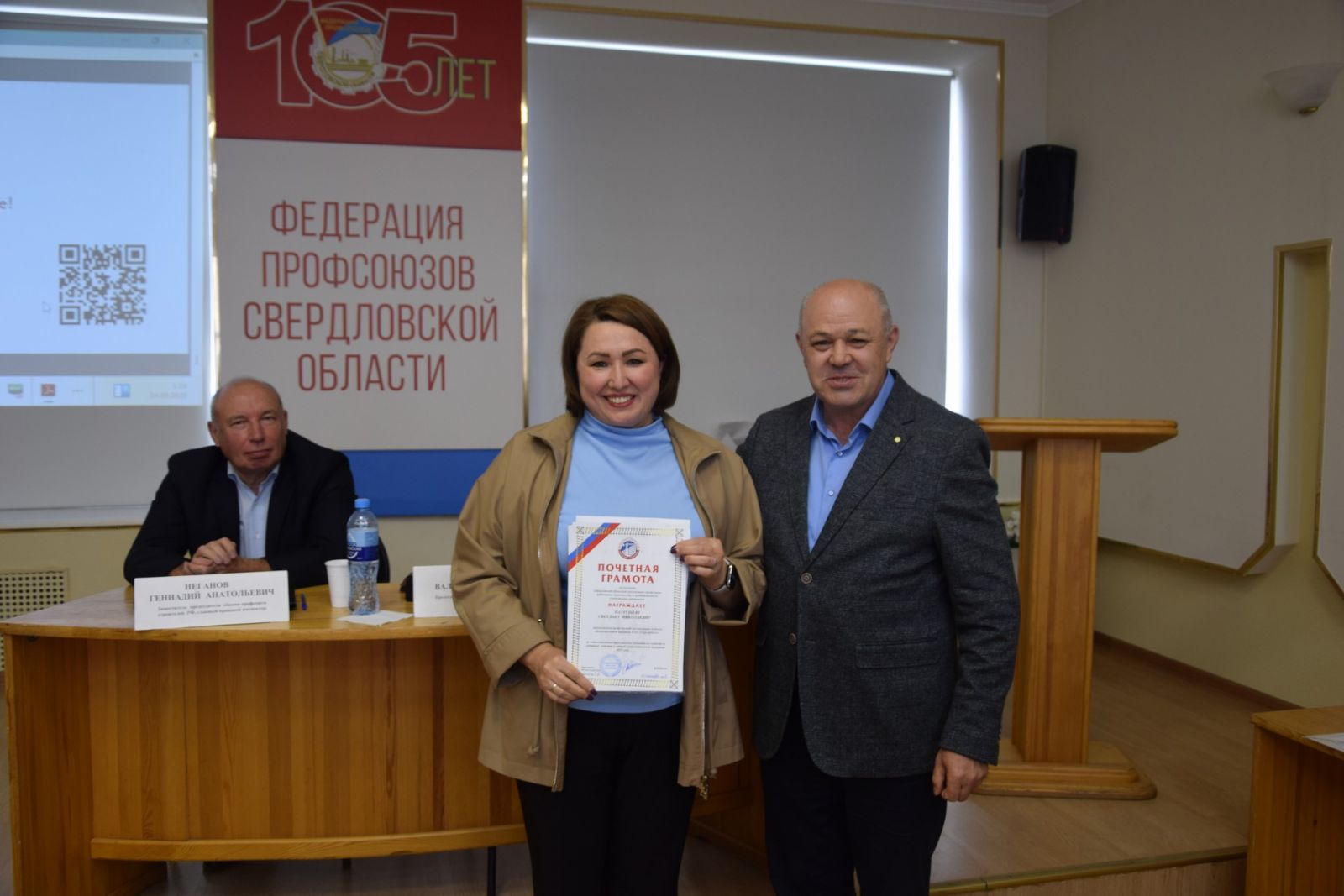 Михайлова Ольга Николаева, главный бухгалтер профсоюзной организации ПАО "Ураласбест" - Грамотой Федерации профсоюза Свердловской области;