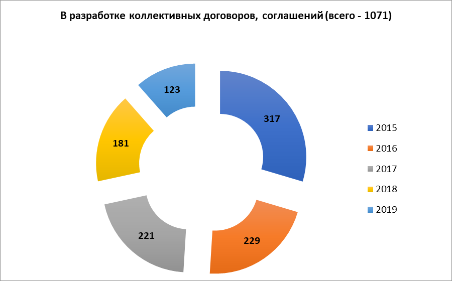 Оказана помощь профсоюзным организациям и работодателям строительной отрасли в разработке, экспертизе коллективных договоров и локальных нормативных актов. За отчетный период проведена экспертиза 488 документов.