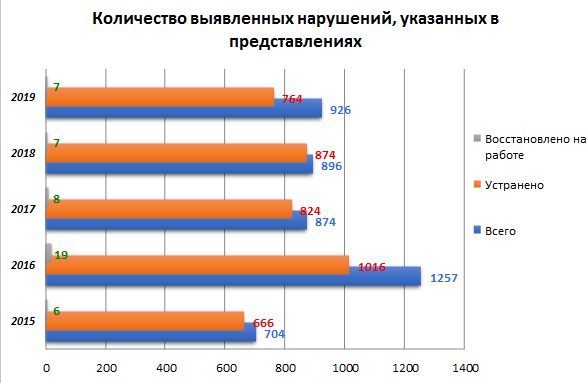 При этом выявлено более 4600 нарушений трудового законодательства, более 4000 нарушений устранено.